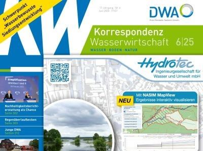 KW Korrespondenz Wasserwirtschaft is the organ of the DWA for general water management issues: hydrology, water resources management, digitalization, surface water and soil, hydraulic engineering, hydro power, surface water ecology, ground water, hydromechanics and flood protection. Added to this are cross-cutting issues such as law, economics, education and international cooperation. In addition to detailed technical papers, it provides comprehensive information “from the sector”: updates on the work of the DWA and its committees, news from the fields of science and practice, and bulletins - everything that’s important for water scientists: names and heads, legal cases, dissertations, books and other media, events. Print run: approx. 3.000 copies